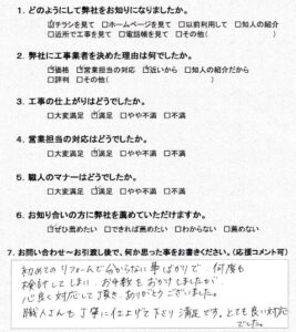 お客様の声 今回は、トイレと浴室水栓の交換工事を行いました。「ていねいに仕上げて頂きありがとうございます。 また何かリフォームありましたらお願いします。」 アンケートをお寄せいただきまして、ありがとうございました!