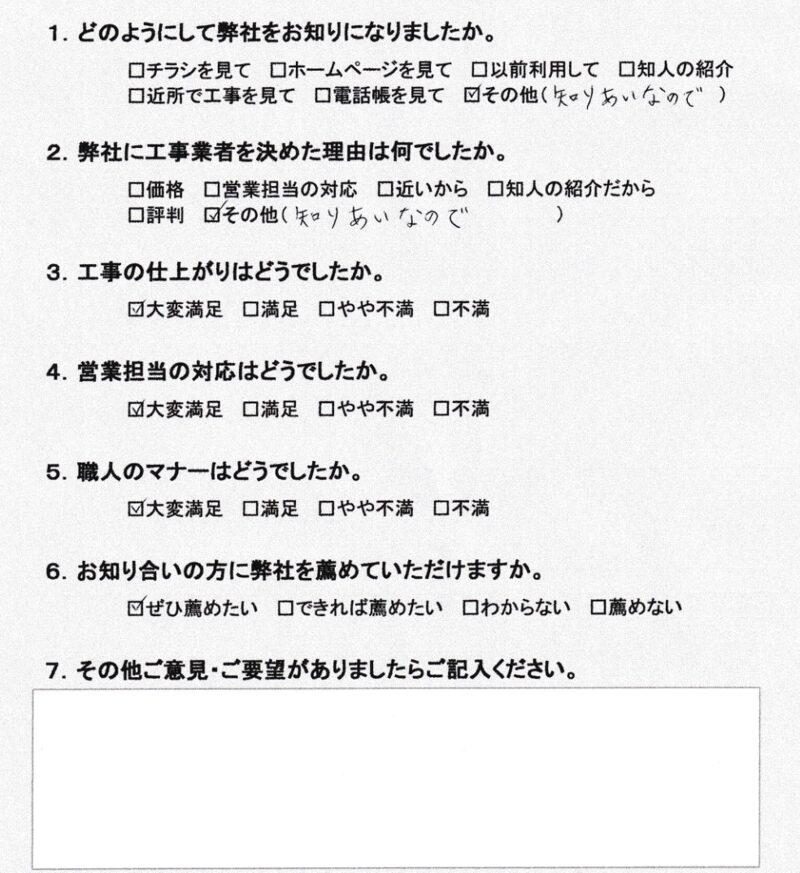 海老名市東柏ヶ谷A様 2025/04/19 最終更新日時 : 2025/04/19 iine_service お客様の声 今回の工事は、6帖の壁と天井のクロスの貼り替えを行いました。イメージ通りの仕上がりにとても喜んでいただきました。 アンケートをお寄せいただきまして、ありがとうございました! 施工内容を見る