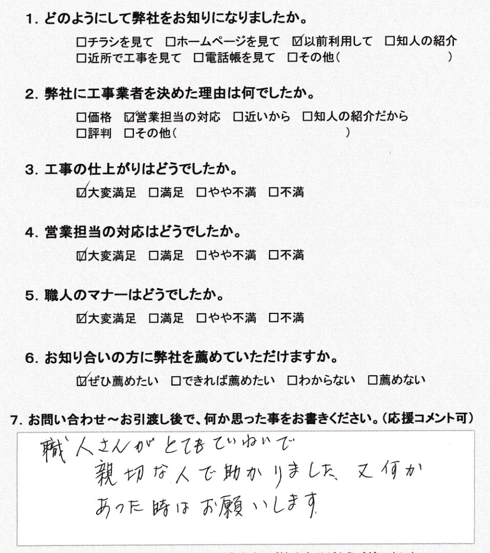 綾瀬市大上S様 2025/08/30 最終更新日時 : 2025/08/30 iine_service お客様の声 今回は、分電盤交換工事を行いました。「職人さんがとてもていねいで親切な人で助かりました。 又何かあった時はお願いします。」 アンケートをお寄せいただきまして、ありがとうございました! 施工内容を見る