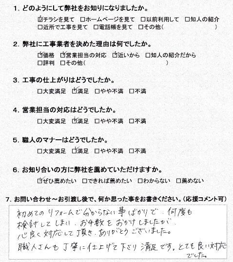 職人さんも丁寧に仕上げて下さり満足です。とても良い対応でした。」