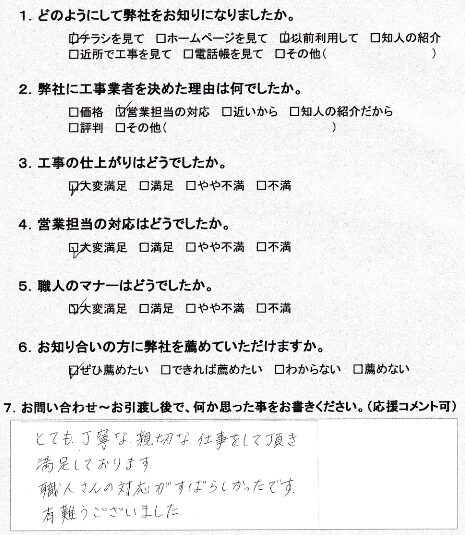 「とても丁寧な親切な仕事をして頂き