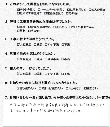 「年末の施工でしたので、気持ち良く新年をむかえられそうです!
