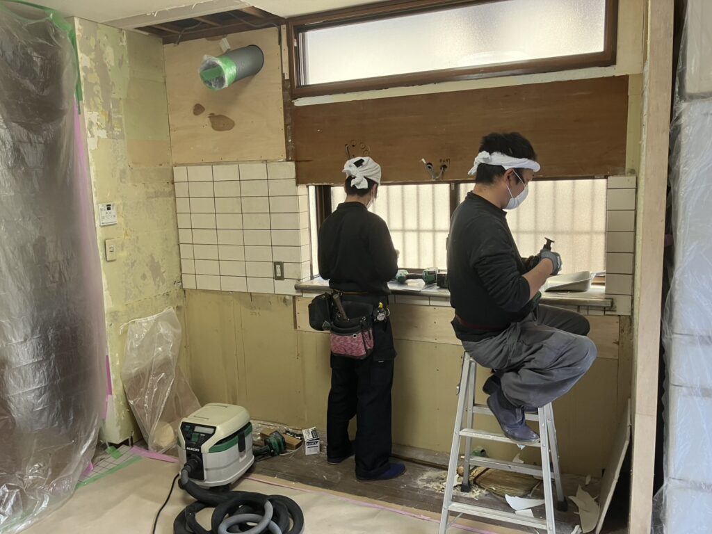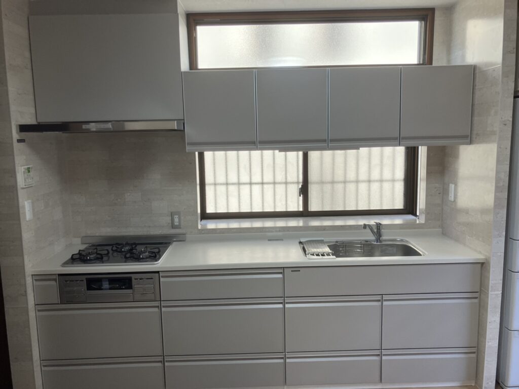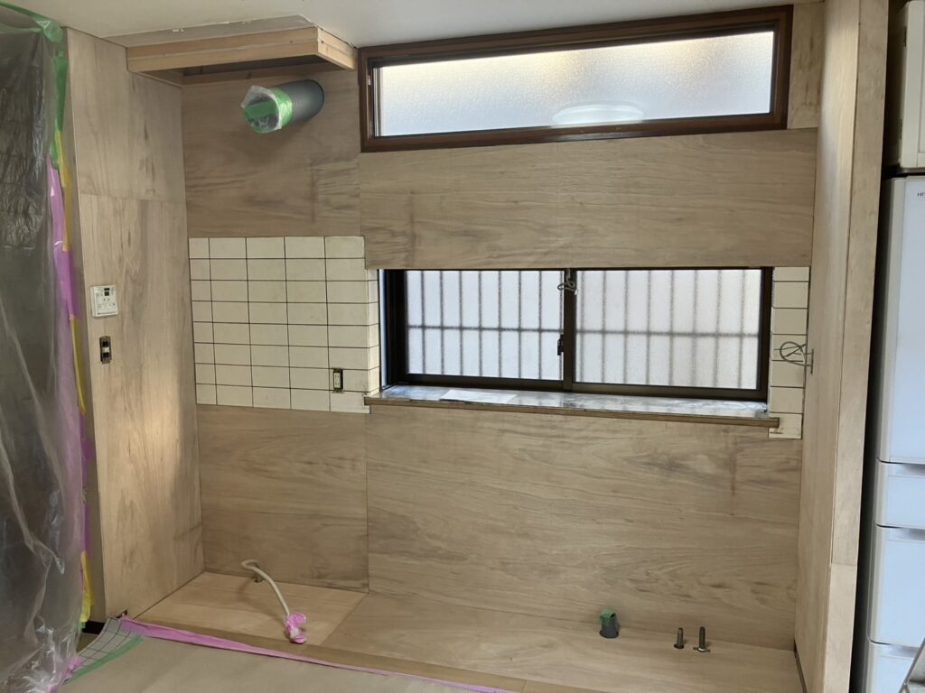 今回は、キッチン交換とクロス貼り替え(穴補修リペアプレートあり)とコンセント類の交換と和室工事(漆喰塗壁/襖張替/ガラスフィルム貼り他)を行いました。
