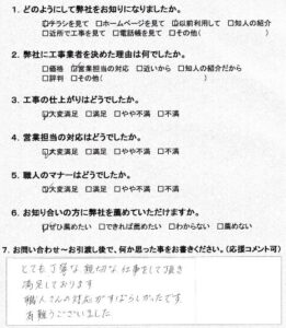 工事も工程通り無事に終わり、職人の対応など含めて大変喜んでいただきました。