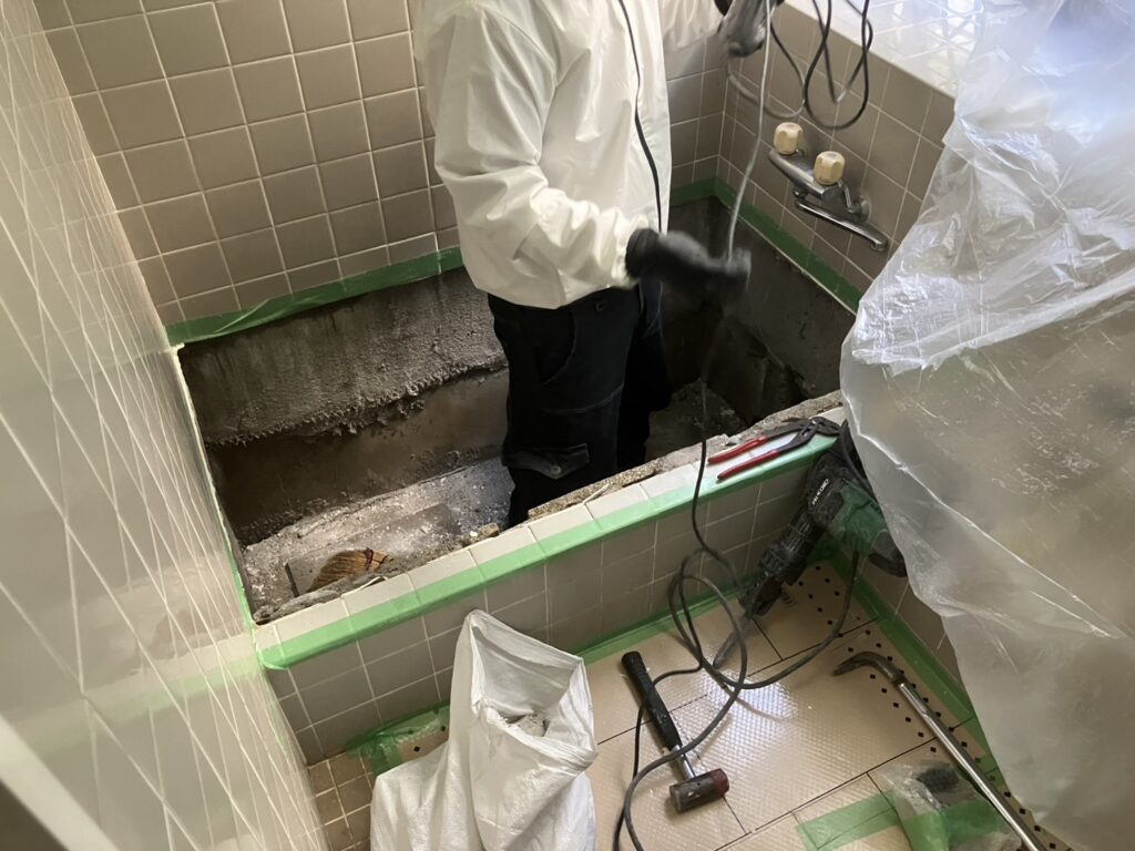 既設の浴槽を撤去及び設置するにあたり、追い焚き配管工事とタイル工事もセットで行いました。