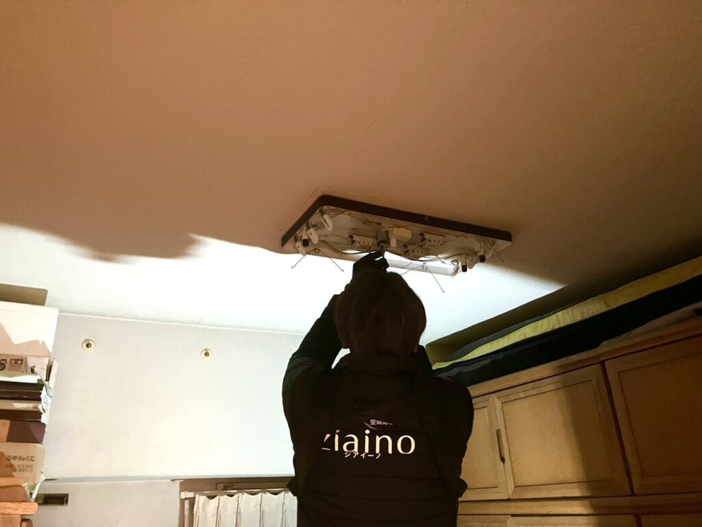 交換箇所は、リビングと和室、洋室2部屋の計4箇所となり、その内2箇所は、今後照明器具が簡単に交換できるようにシーリング器具を新たに取付させていただきました。