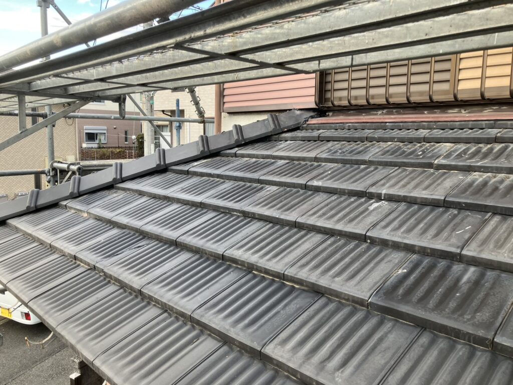 一部足場組を行い、瓦の積み替え時に防水シートの工事などを行いました。